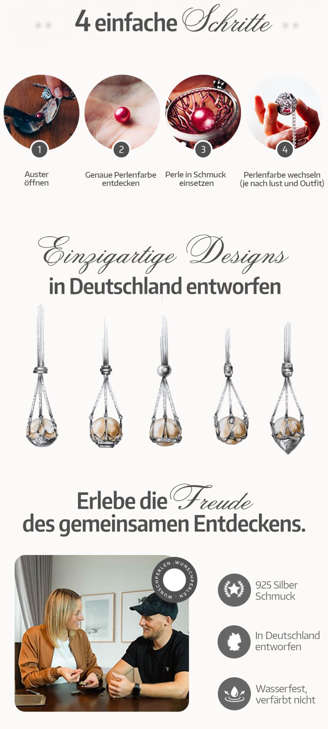 Jede Auster birgt eine echte Perle – die Farbe bleibt bis zum Öffnen geheim. Ein einzigartiges Erlebnis in Deutschland! Wähle zwischen Austern mit natürlichen oder bunten Perlen und gestalte deinen Schmuck individuell und persönlich.